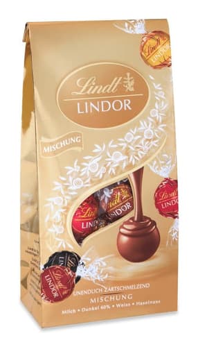 Wann immer, wo immer Sie LINDOR genießen – es ist ein magischer Moment. Wenn die feine Chocoladenhülle bricht, verführt die unendlich zartschmelzende Füllung Ihre Sinne und trägt Sie sanft davon – ein Moment puren Chocoladenglücks.Es ist Ihr Moment. Mit LINDOR – kreiert von den Lindt Maîtres Chocolatiers. Liebe und Leidenschaft für Chocolade seit 1845. Inhalt: 20 Lindor Kugeln Weiß, je 12,5g 20 Lindor Kugeln Nuss, je 12,4g 20 Lindor Kugeln 60%, je 12,4g 21 Lindor Kugeln Milch, je 12,5g Kühl und trocken lagern.