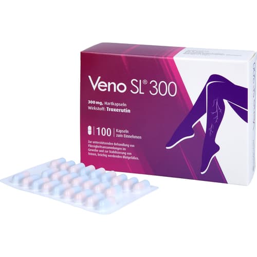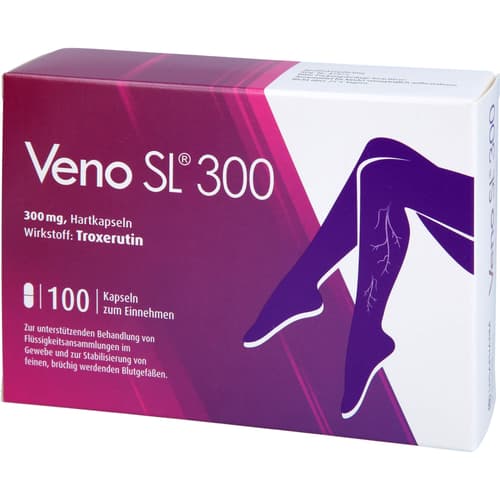Veno SL 300, 300 mg Hartkapseln. Wirkstoff: Troxerutin. Anwendungsgebiete: Entgegenwirken der Bildung von Ödemen (Ödemprotektivum); Verbesserung der Fließfähigkeit des Blutes: unterstützende Behandlung bei Flüssigkeitsansammlungen im Gewebe (exsudative Prozesse); Stabilisierung von feinen, brüchig werdenden Blutgefäßen (Kapillarfragilität).Zu Risiken und Nebenwirkungen lesen Sie die Packungsbeilage und fragen Sie Ihre Ärztin, Ihren Arzt oder in Ihrer Apotheke.