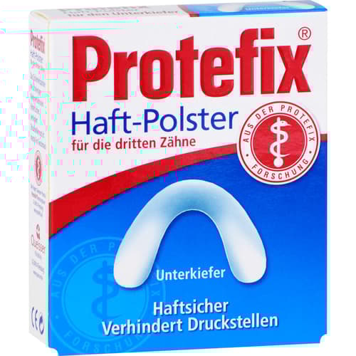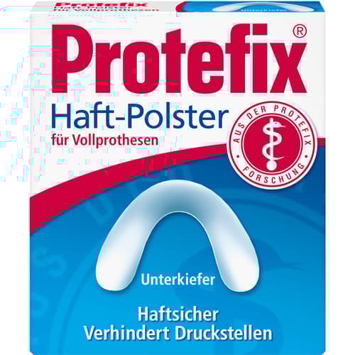 Wirksamer Schutz vor Druckstellen und Entzündungen, bewährt bei schwierigen Kieferverhältnissen oder großen Haftproblemen. Vor allem für die besonderen Problemfälle der Interimszeit empfehlen Zahnärzte zur Unterfütterung in den entstandenen Hohlräumen Protefix Haft-Polster für Unter- und Oberkieferprothesen. Die Haft-Polster bestehen aus feinem, gaumenfreundlichem Vliesgewebe, das Natriumalginat enthält und nach kurzem Anfeuchten die Haftkraft zusätzlich unterstützt. So bieten die Polster wirksamen Schutz vor Druckstellen und Entzündungen. Neben ihrer Bedeutung bei Interimsprothesen haben sie sich auch bei starker Kieferrückbildung - hier besonders beim Unterkiefer - bewährt, wenn dieser sehr schmal oder stark abgeflacht ist. Für Träger von Vollprothesen mit extremen Haftproblemen sind Protefix Haft-Polster daher oft die letzte Rettung, wenn sonst nichts mehr halten will.