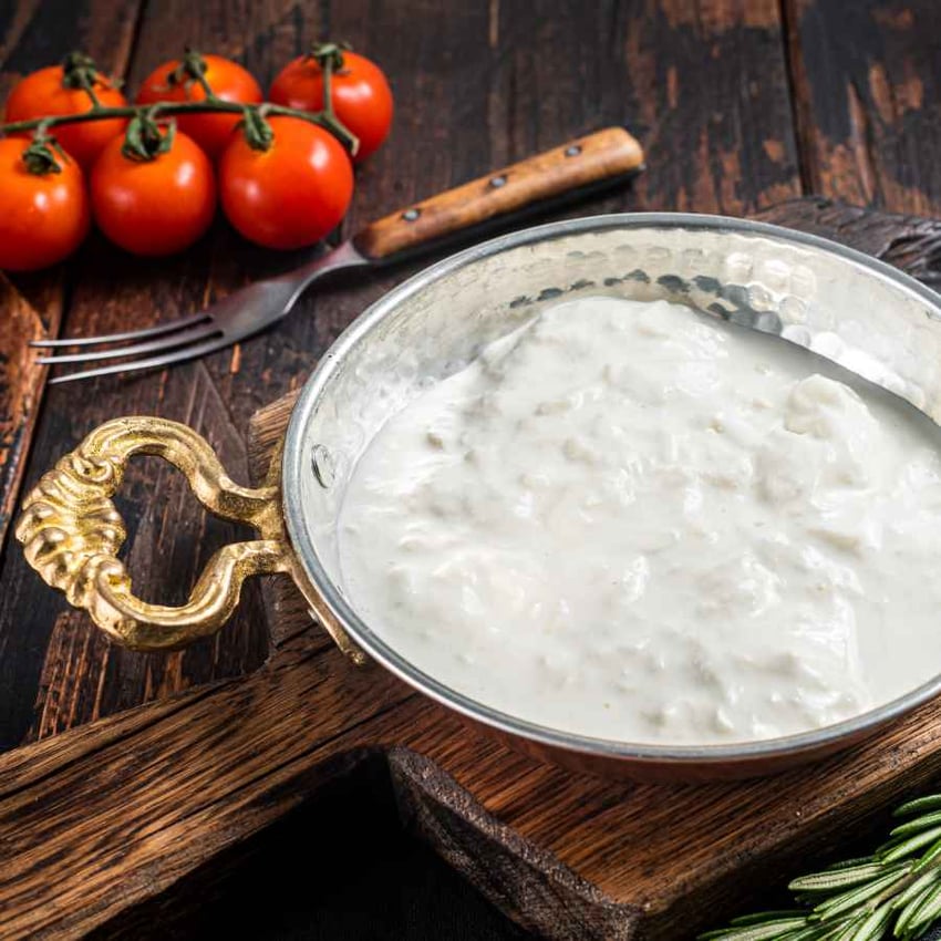 La Stracciatella Sabelli: das cremige Herz der Burrata Sabelli, bestehend aus frischer Sahne in Kombination mit exquisiten Mozzarella-Spänen,