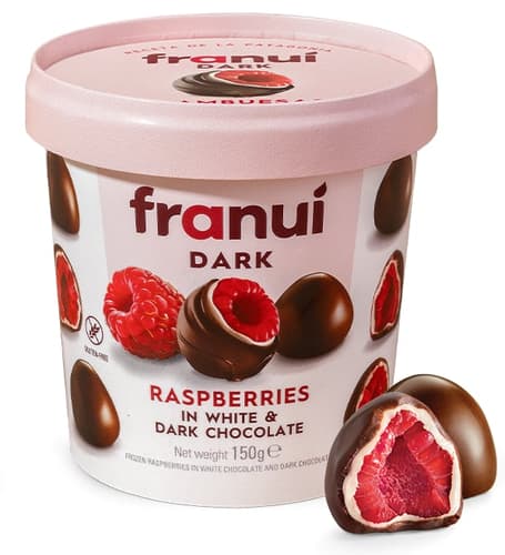Frische Himbeeren mit Zartbitter-Schokolade überzogen