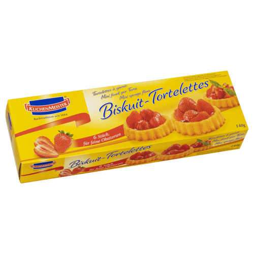 Deutschland,Die KuchenMeister Mini Biskuit Torteletts sind kleine, goldgelb gebackene Biskuitböden als Basis für Obstküchlein und Dessertideen. Sie sind zart im Biss und aromatisch.