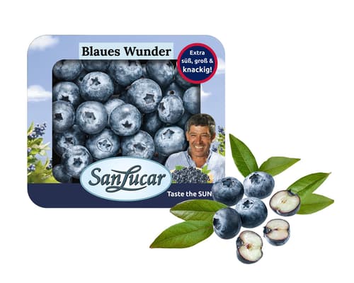 Für den großen Beeren-Appetit, hat SanLucar diese besonders großen XL Heidelbeeren. Sie schmecken süß, lieblich-aromatisch, sehr frisch und cremig. Sie ist nicht vergleichbar mit der herkömmlichen Heidelbeere da der Durchmesser einer Beere durchschnittlich die einer 1€ Münze beträgt!