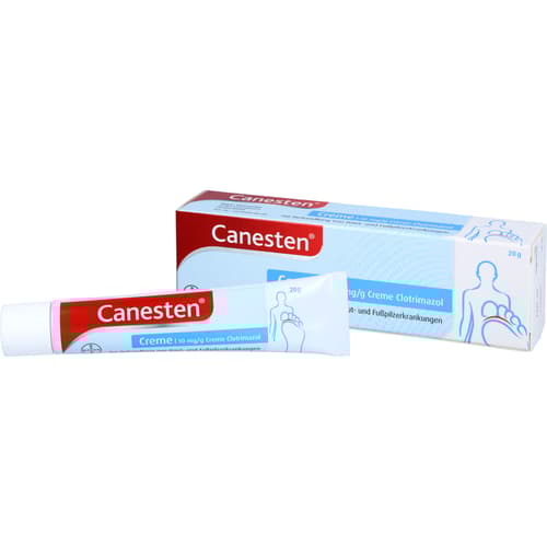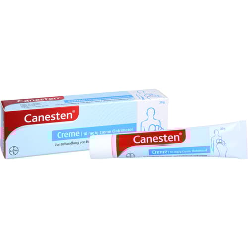 Canesten Creme. Wirkstoff: Clotrimazol. Anwendungsgebiet: zur Behandlung von Pilzerkrankungen (Mykosen) der Haut und Schleimhaut, verursacht durch Dermatophyten, Hefen, Schimmelpilze und andere, wie Malassezia furfur, sowie Hautinfektionen durch Corynebacterium minutissimum. Anwendung auch bei Candida-Vulvitis und Candida-Balanitis.Zu Risiken und Nebenwirkungen lesen Sie die Packungsbeilage und fragen Sie Ihre Ärztin, Ihren Arzt oder in Ihrer Apotheke!