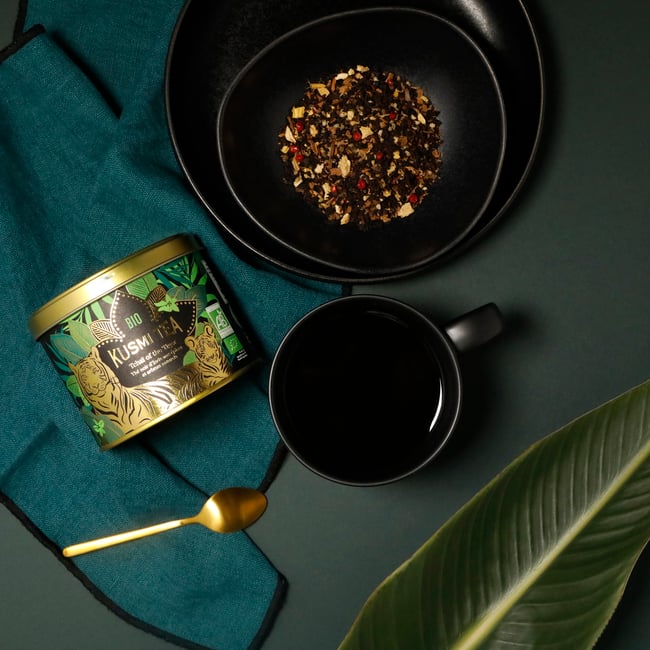 Gönn Dir eine Tasse Kusmi BIO Tchai of the Tiger und erlebe würzige Tiefe und pure Aromavielfalt. 🍵