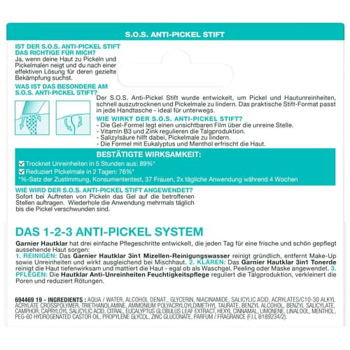 Garnier Hautklar Aktiv Anti-Pickel Roll-On 2 in 1 Abdeckend + Austrocknend