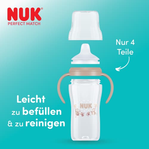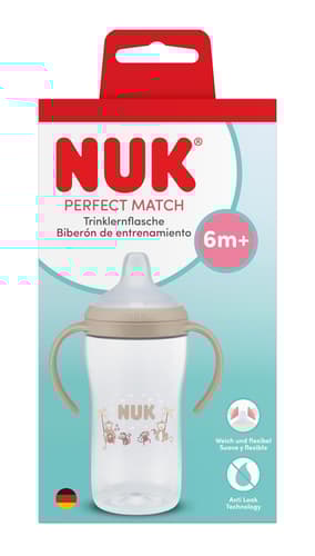 Hergestellt in Deutschland - unter höchsten Qualitätsstandards. NUK Perfect Match Trinklernflaschen sind aus hochwertigem Polypropylen (PP) und Silikon gefertigt.