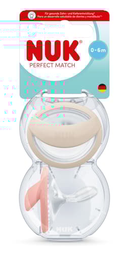 ***Der Perfect Match (0-6M) wurde speziell für die Stillzeit entwickelt. Nach dem Abstillen bitte auf ein anderes NUK Schnuller-Modell wechseln.