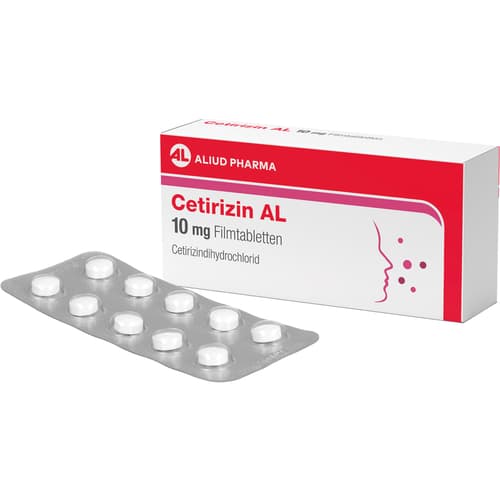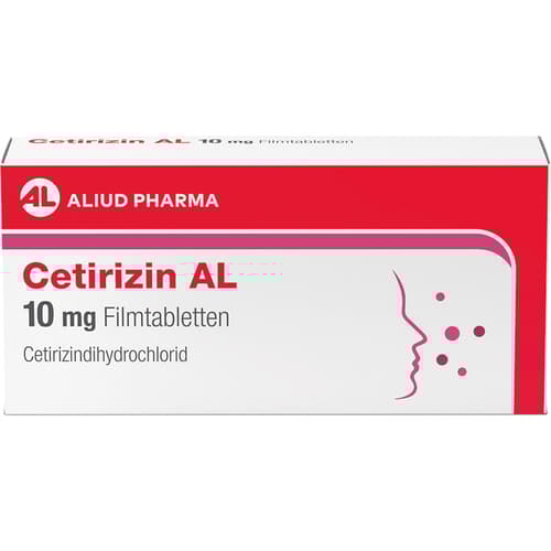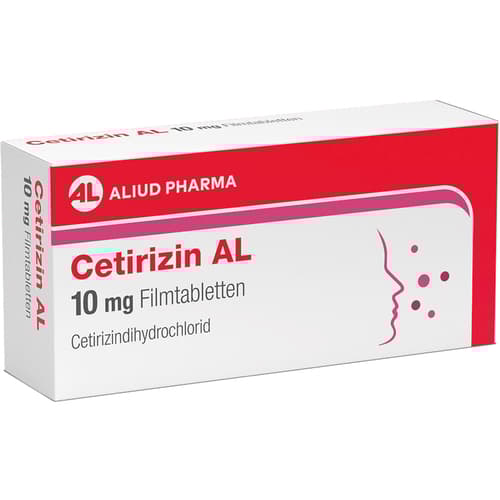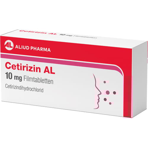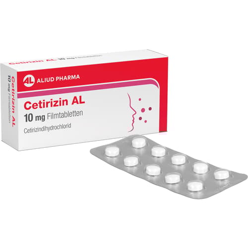 Cetirizin AL 10 mg Filmtabletten Wirkstoff: Cetirizindihydrochlorid. Anwendungsgebiete: zur Linderung von Nasen- und Augensymptomen bei saisonaler und ganzjähriger allergischer Rhinitis und zur Linderung von chronischer Nesselsucht (chronische idiopathische Urtikaria).Zu Risiken und Nebenwirkungen lesen Sie die Packungsbeilage und fragen Sie Ihre Ärztin, Ihren Arzt oder in Ihrer Apotheke.