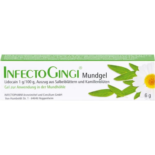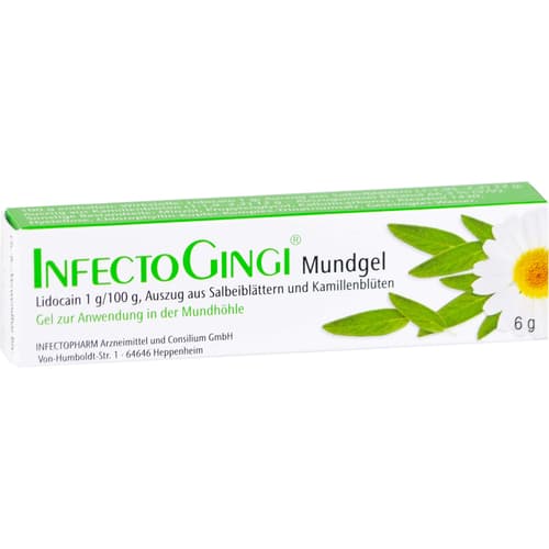 Infectogingi Mundgel. Anwendungsgebiete: zur zeitweiligen unterstützenden Behandlung von Entzündungen und Wunden der Mundschleimhaut und des Zahnfleisches. Warnhinweis: Enthält Propylenglycol.Zu Risiken und Nebenwirkungen lesen Sie die Packungsbeilage und fragen Sie Ihre Ärztin, Ihren Arzt oder in Ihrer Apotheke.