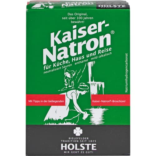 Natriumhydrogencarbonat neutralisiert Säuren, enthärtet mild-alkalisch. Das altbewährte Hausmittel! Kaiser-Natron bindet und neutralisiert alle Säuren, wandelt sie in neutrale Salze und sprudelnde Kohlensäure um und ist außerdem noch mild-alkalisch. Reines Natriumhydrogencarbonat, bekannt auch als doppelkohlensaures Natron, (Natrium-) Bicarbonat oder Baking Soda.