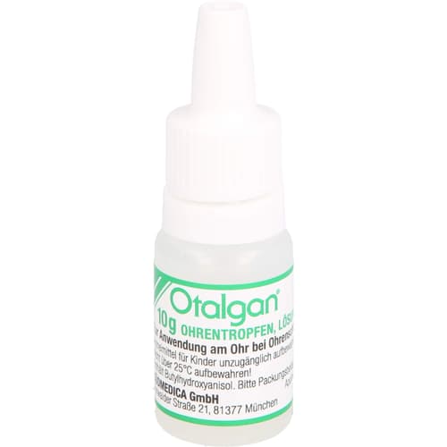 Otalgan Ohrentropfen. Anwendungsgebiete: zur örtlichen symptomatischen Behandlung von Schmerzen am äußeren Gehörgang, d.h. bei äußeren Ohrenentzündungen sowie bei akuter Mittelohrentzündung.Zu Risiken und Nebenwirkungen lesen Sie die Packungsbeilage und fragen Sie Ihre Ärztin, Ihren Arzt oder in Ihrer Apotheke.