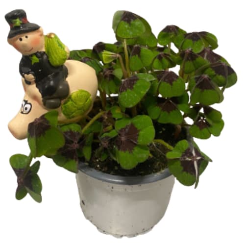 Glücksklee im Goldtopf mit Schornsteinfeger, ca. 12cm Topf