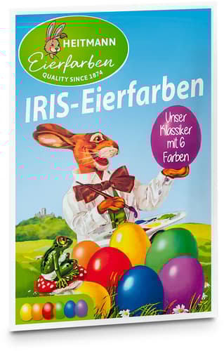 Die HEITMANN Eierfarbe Iris sorgt für intensive und leuchtende Farbergebnisse beim Eierfärben. Die Anwendung ist einfach und für verschiedene Eiersorten geeignet.