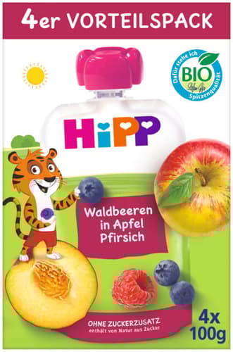 HiPP Quteschbeutel Waldbeeren in Apfel-Pfirsich ab 1+