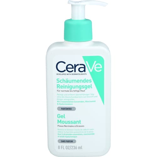 Geben Sie das Schäumende Reinigungsgel von CeraVe mit etwas Wasser auf Ihre Handflächen und schäumen es leicht auf. Anschließend massieren Sie den Schaum sanft auf die Haut von Wangen, Kinn und Stirn, um Schmutz und Talgreste zu entfernen. Im Anschluss den Reinigungsschaum sorgfältig mit Wasser abspülen. Bei Kontakt mit den Augen, diese umgehend mit klarem Wasser ausspülen. Der Reinigungsschaum kann auch für die Reinigung des Körpers verwendet werden. Reinigungsgel für empfindliche Haut ohne Duftstoffe. Geeignet für Mischhaut und fettige Haut.Ingredients