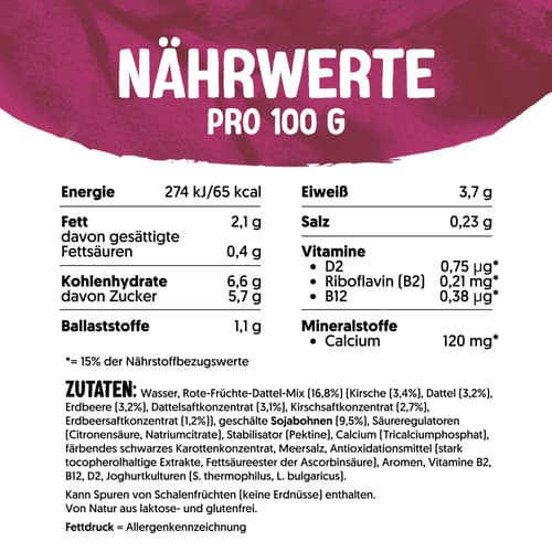 Ascorbinsäure), Aromen, Vitamine (B2, B12, D2), Joghurtkulturen (S.