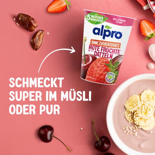 Alpro Joghurtalternative auf Soja Basis Rote Früchte mit Datteln ohne Zuckerzusatz VEGAN