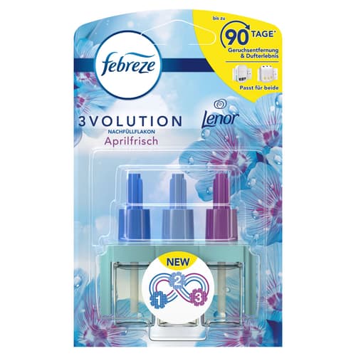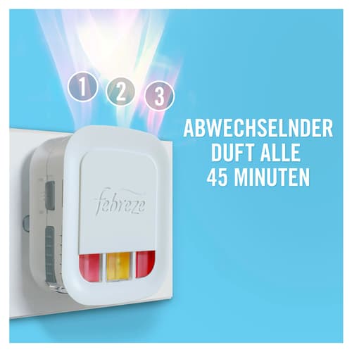 Febreze 3Volution Aprilfrisch Duftstecker Nachfüller 20ml, 3 abwechselnde Düfte entfernen Gerüche