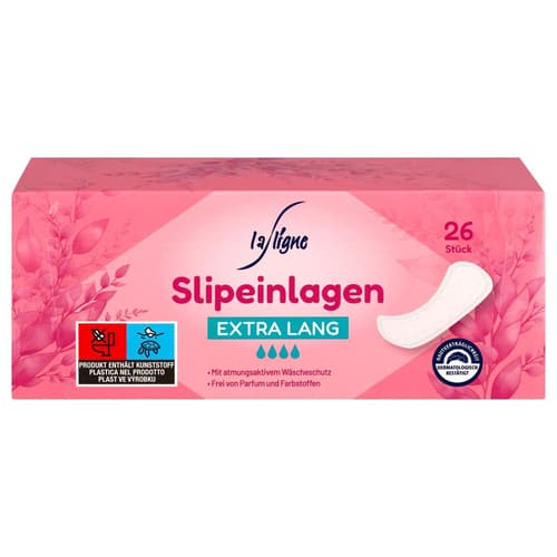 Deutschland,Die La Ligne Slipeinlagen extra lang sind für den täglichen Komfort konzipiert und bieten eine verlängerte Form für mehr Abdeckung. Sie eignen sich als diskrete Einlage in der Unterwäsche.