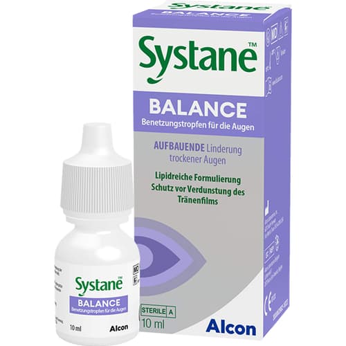Die SYSTANE BALANCE Benetzungstropfen sind lipidhaltige Augentropfen, die speziell zur Behandlung trockener Augen entwickelt wurden. Sie stabilisieren den Tränenfilm, reduzieren die Verdunstung und bieten langanhaltende Linderung bei Brennen und Reizungen. Ideal auch für Kontaktlinsenträger. Die 10 ml Flasche ist nach dem Öffnen sechs Monate haltbar und sorgt für frische Augen.
