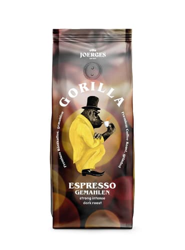 Bei Gorilla-Kaffee wird viel Wert auf eine große Auswahl gelegt, damit auch wirklich für jeden Geschmack etwas dabei ist. Darüber hinaus ist das klassisch-schöne Design des praktischen 500g Vorratsbeutels nicht nur im Verkaufsregal, sondern auch in jeder Küche ein echter Hingucker. Aber noch mehr als die Verpackung zählt für Gorilla auch bei Gorilla Kaffee der Geschmack und die einfache Zubereitung: Deshalb stimmt der Kaffee Sommeliers jede der Sorten genau auf die jeweilige Zubereitungsart ab. Egal ob Filterkaffee, Siebträger- oder Kaffeevollautomat: mit Gorilla-Kaffee gelingt immer ein perfektes Geschmackserlebnis. Besonders die Kaffeemischungen für den modernen Vollautomaten zu Hause oder im Büro sind echte Verkaufsschlager: Als einziger Anbieter stimmt Gorilla die Mischungen mit großem Aufwand auf die meistverkauften Vollautomaten ab - deshalb schwören immer mehr Kaffeeliebhaber in ganz Europa auf Gorilla Kaffee. Das erinnert Gorilla auch jeden Tag an die ökologische und soziale Verantwortung als Familien- unternehmen, das auf dem globalen Kaffeemarkt tätig ist. Aus diesem Grund arbeitet Gorilla eng mit seinen Handelspartner Olam International Ltd. und auch der Efico Fundation und Mondberge zusammen. Somit unterstützen sie vielerlei Nachhaltigkeitsprojekte und soziale Initiativen direkt vor Ort. Premium-Kaffee für alle. Perfekt im Geschmack. Einfach in der Zubereitung.