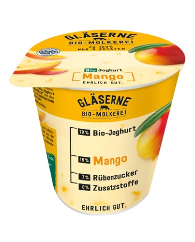Garantierte Mindesthaltbarkeit dieses Produktes: 4 Tage.Wenn die Mindesthaltbarkeit eines Produkts aus deinem Einkauf kürzer sein sollte, kontaktiere uns und wir erstatten dir den für die Ware gezahlten Betrag in Credits. Dies gilt nicht für Artikel aus der Kategorie "Rette Lebensmittel".Zutaten: BIO-JOGHURT, 15 % Bio-Mango, Bio-Rübenzucker