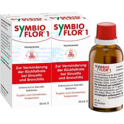 Symbioflor 1 drops, suspension. Active ingredient: Enterococcus faecalis bacteria. Areas of application: to reduce the relapse rate in recurrent infections of the upper and lower respiratory tract, especially in inflammations of the paranasal sinuses (sinusitis) and the bronchi (bronchitis).