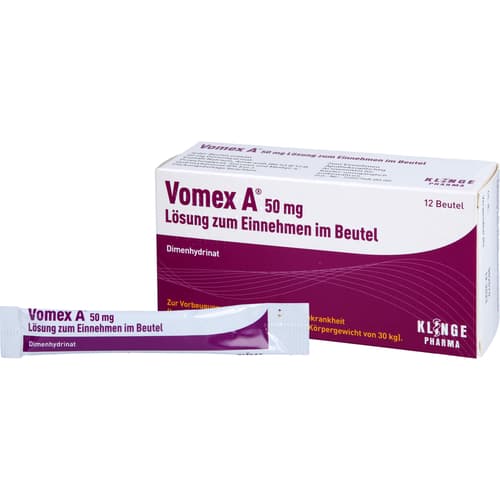 Vomex A 50 mg Beutel gegen Reisekrankheit, 12 St. Beutel1 StkDieses Produkt ist nicht mehr verfügbar.Herkunftsland:laut dem aktuellen AngebotBitte kontaktiere unseren Kundenservice, um genauere Informationen zu erhalten.