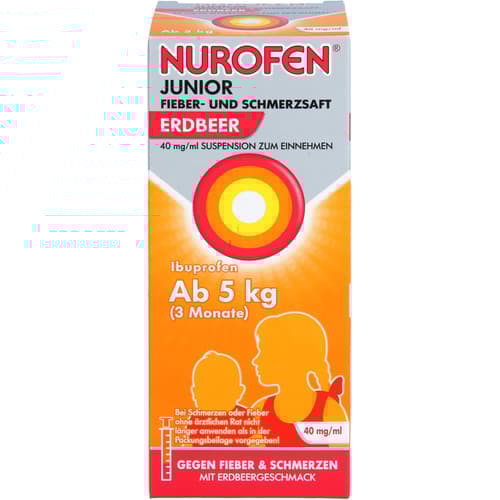 Nurofen Junior Fieber- und Schmerzsaft Erdbeer 40 mg/ml Suspension zum Einnehmen, 150 ml Lösung