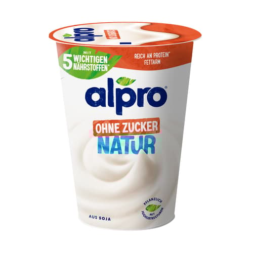 Entdecke die cremige Soja-Joghurtalternative von Alpro – 100 % pflanzlich, komplett ohne Zuckerzusatz und perfekt für deinen veganen Lifestyle.