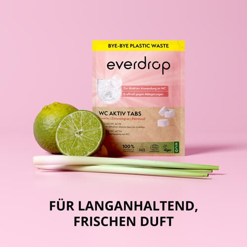 Die WC-Aktiv-Tabs von everdrop halten Ihren WC Abfluss* sauber und reinigen mit den enthaltenen Probiotika auf natürliche und nachhaltige Weise.