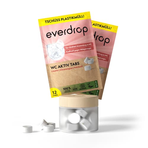 Die everdrop WC Aktiv Tabs reinigen Ihre Toilette natürlich und nachhaltig. Diese 12 Tabs mit Probiotika wirken tief bis in den Abfluss, bekämpfen Gerüche langfristig und entfernen Kalk, Ablagerungen sowie hartnäckigen Schmutz. Mit 100% natürlichen Inhaltsstoffen bieten sie eine hohe Reinigungskraft. Einfach einen Tab in die Toilette geben, einwirken lassen und spülen – für eine mühelose und umweltfreundliche WC-Hygiene.
