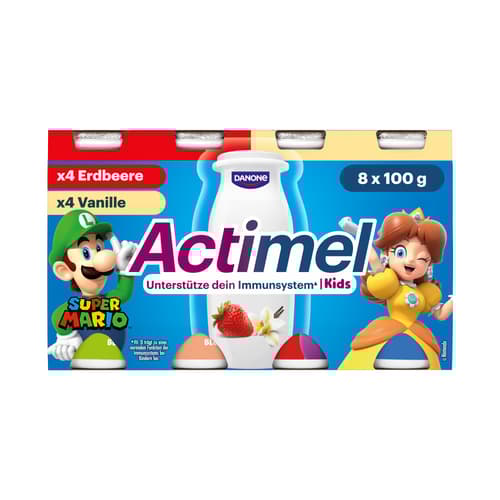 Zusammen mit dem fruchtig-süßen Geschmack von Erdbeere und Vanille begleiten unsere guten Inhaltsstoffe auch die kleinen Helden des Alltags beim großen Abenteuer des Wachsens! Kinder sind kleine Welt-Entdecker. Deshalb beinhaltet Actimel Kids 20 Milliarden L. Casei Joghurtkulturen, Calcium** und die Vitamine B6 und D*, die wertvolle Nährstoffe liefern. *Vitamine B6 & D sind bekannte Nährstoffe. ** Calcium ist bekannt dafür, dass es zu einer normalen Entwicklung beiträgt.