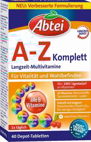 Abtei A-Z Komplett Tabletten Langzeit-Multivitamine für Vitalität und Wohlbefinden, 40 St. Tabletten