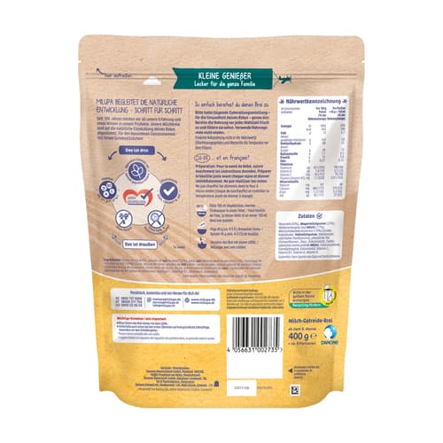 Dank der sorgfältig ausgewählten Zutaten liefert der Milchbrei Vitamine und Mineralstoffe, wie Eisen, Calcium sowie Vitamin D, und begleitet die natürliche Entwicklung des Kindes - Schritt für Schritt