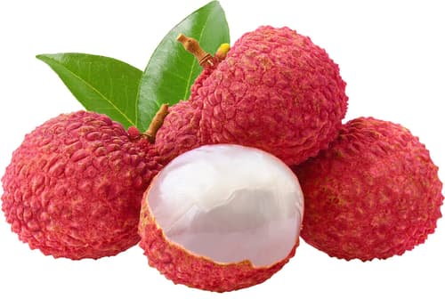 Litchis wachsen büschelweise an halbhohen Bäumen. Die leuchtend roten bis braunen Früchte haben einen Durchmesser von 3-4 cm. Die Haut der Litchi ist spröde und von noppenartiger Struktur. Das unter der Schale sitzende saftreiche Fruchtfleisch ist weißlich, perlmuttartig durchschimmernd und von einem feinen, säuerlich-süßen, an Muskat erinnernden Geschmack. Im Inneren der Frucht befindet sich ein haselnussgroßer, ungenießbarer Kern.