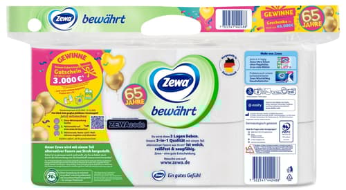 Zewa Toilettenpapier Bewährt mit Strohanteil, 3-lagig