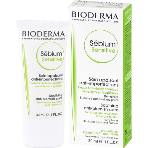 BIODERMA Sébium Sensitive beruhigende, feuchtigkeitsspendende Anti-Unreinheiten-Creme, 30 ml Creme
