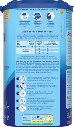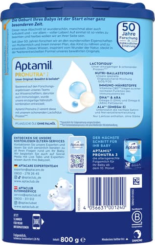 Lieferumfang: 1 x 1,2 kg Aptamil Pronutra 2 / Vorratspackung mit zwei individuellen Beuteln / Ohne Stärke / Nur pflanzliche Öle ohne Palmöl / Ab dem 6. Monat / Ideal im Beikostalter