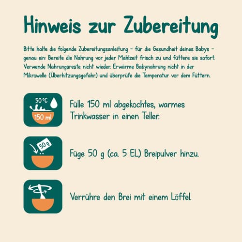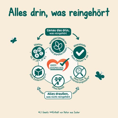 Für dein Baby ist ein erholsamer Schlaf für einen guten Start am nächsten Tag wichtig. Unser Gute Nacht Vollkorn Früchte ist auf die Bedürfnisse von Babys ab dem 6. Monat abgestimmt und enthält neben einem hohen Vollkornanteil, das Gute aus der Milch und feine Früchte. Damit liefert unser Milchbrei Vitamine und Mineralstoffe, wie Eisen, Calcium und Vitamin D und begleitet die natürliche Entwicklung deines Kindes - Schritt für Schritt. Unser Milchbrei ist lecker, frei von Konservierungs- und Farbstoffen (laut Gesetz) & ohne Zuckerzusatz (enthält von Natur aus Zucker).
