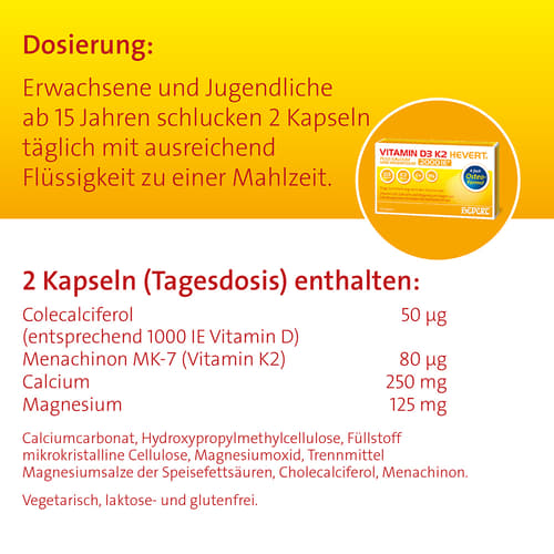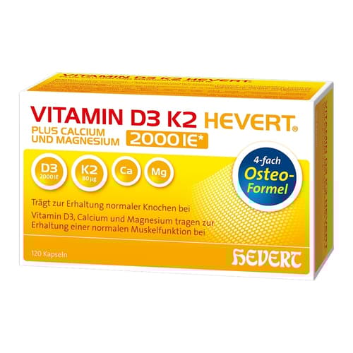 VITAMIN D3 K2 Hevert plus Ca Mg 2000 IE/2 Kapseln, 120 St. Kapseln