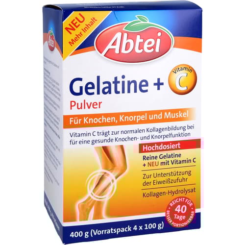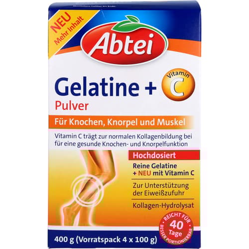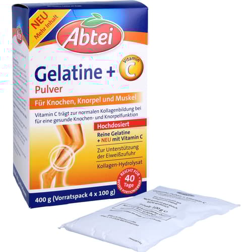 Abtei Gelatine Plus Vitamin C Pulver für Knochen, Knorpel und Muskeln, 400 g Pulver