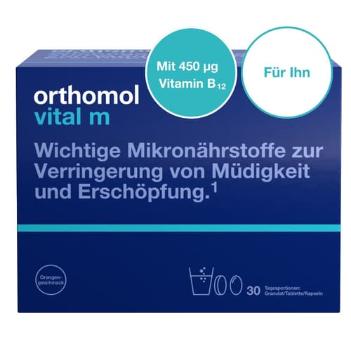 Orthomol Vital m für Männer - bei Müdigkeit - mit B-Vitaminen und Omega-3-Fettsäuren - Orangen-Geschmack - Granulat/Tabletten/Kapseln, 30 St. Tagesportionen