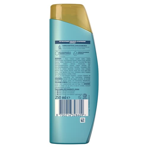 Zutaten:Aqua, Sodium Laureth Sulfate, Sodium Lauryl Sulfate, Sodium Chloride, Cocamidopropyl Betaine, Sodium Xylenesulfonate, Glycol Distearate, Sodium Citrate, Dimethiconol, Parfum, Dimethicone, Piroctone Olamine, Citric Acid, Sodium Benzoate, Sodium Salicylate, TEA-Dodecylbenzenesulfonate, Guar Hydroxypropyltrimonium Chloride, Tocopheryl Acetate, Trideceth-10, Tetrasodium EDTA, Sodium Hydroxide, Coumarin, Hexyl Cinnamal, Aloe Barbadensis Leaf Juice, Linalool, Glycerin, Cocos Nucifera Fruit Juice, Prunus Amygdalus Dulcis Oil, Benzyl Alcohol, Triethylene Glycol, Propylene Glycol