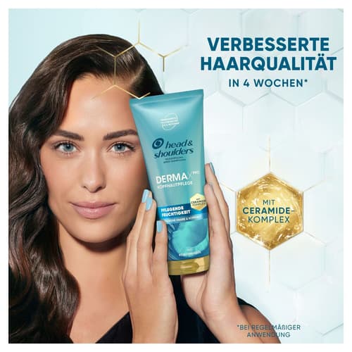 Wussten Sie, dass trockene Kopfhaut mehr als nur Feuchtigkeit benötigt? Head & Shoulders DERMAXPRO Hydra Pflege Haar- & Kopfhautpflegespülung wirkt am Besten gemeinsam mit dem Anti-Schuppen Shampoo und spenden Haar und Kopfhaut ultimative Feuchtigkeit. Unsere feuchtigkeitsspendende Formel ist mit den hautpflegenden Substanzen Kokosmilch, aktiver Aloe und Vitamin E angereichert und basiert auf dem klinisch getesteten Wirkstoff Pirocton Olamin. Das Ergebnis? Eine mit Feuchtigkeit versorgte, schuppenfreie* Kopfhaut. *sichtbare Schuppen, bei regelmäßiger Anwendung