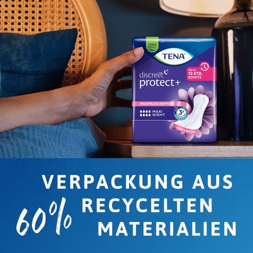 TENA Discreet Protect+ Maxi Night is our most absorbent pad and also has extra length and width at the back for ultimate protection when lying down. The soft, breathable materials ensure maximum comfort - so you can sleep undisturbed all night long.