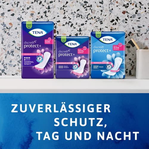 TENA Discreet Protect+ Maxi Night is the perfect pad for women with heavy bladder weakness at night. Feel safe thanks to TRIPLE PROTECTION against leakage, moisture and odours - even during the postpartum period.
