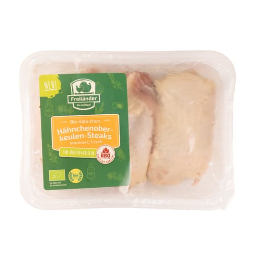 Freiländer BIO Hähnchenoberkeulensteaks mit Haut in Joghurt-Knoblauch-Marinade