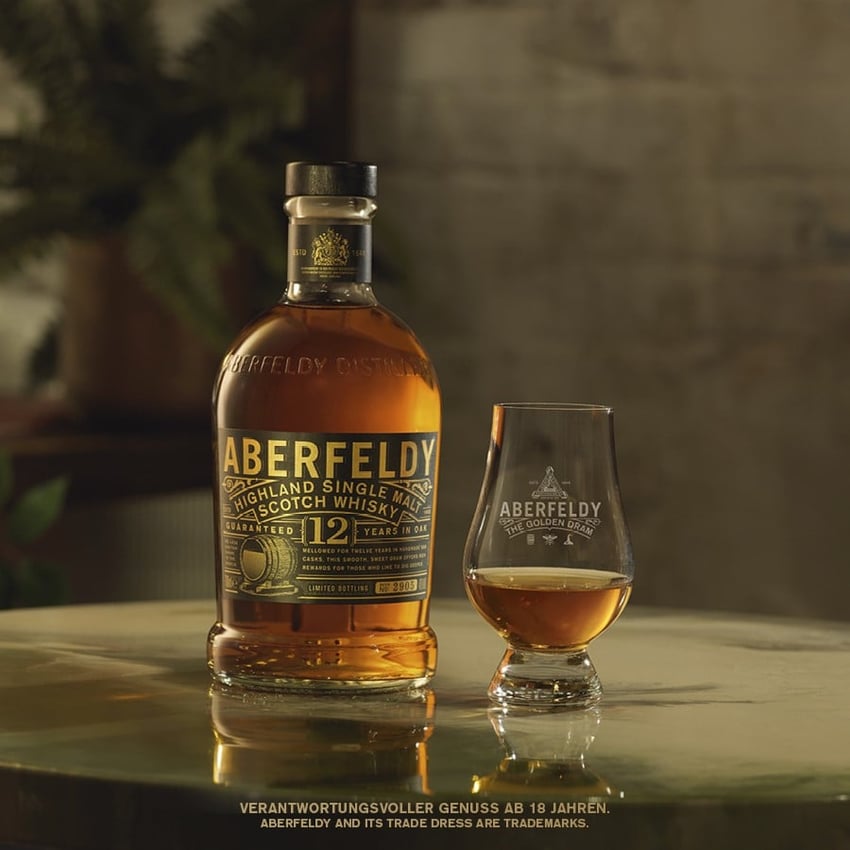 The Aberfeldy Distillery is situated in a lush green valley in the foothills of the central Scottish Highlands. The long-established, remote malt whisky producer was built on land renowned for its gold deposits. Since the 19th century, travellers have been welcomed to sample its treasure.